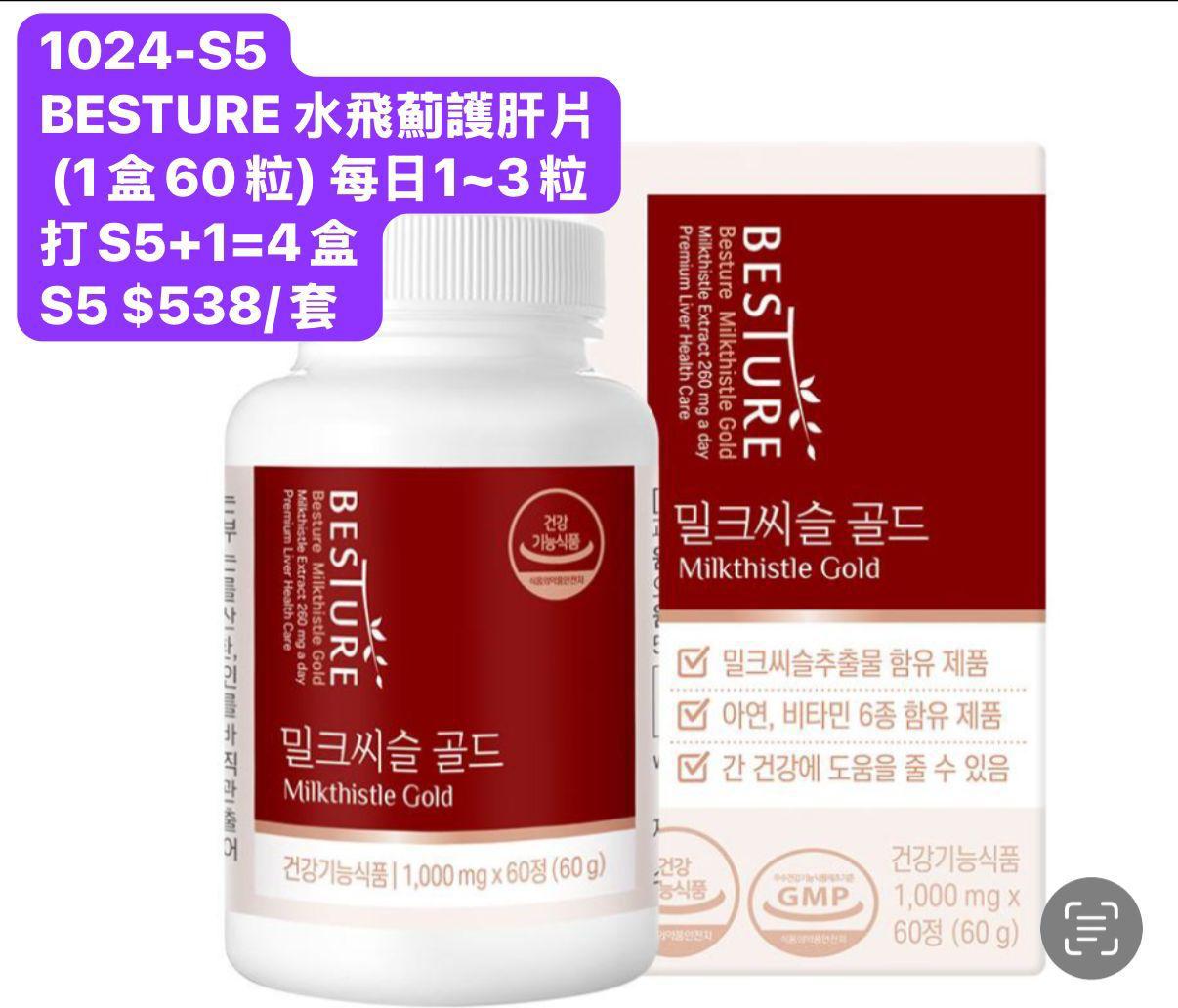 $538/4盒 -BESTURE 水飛薊護肝片 (1盒60粒)