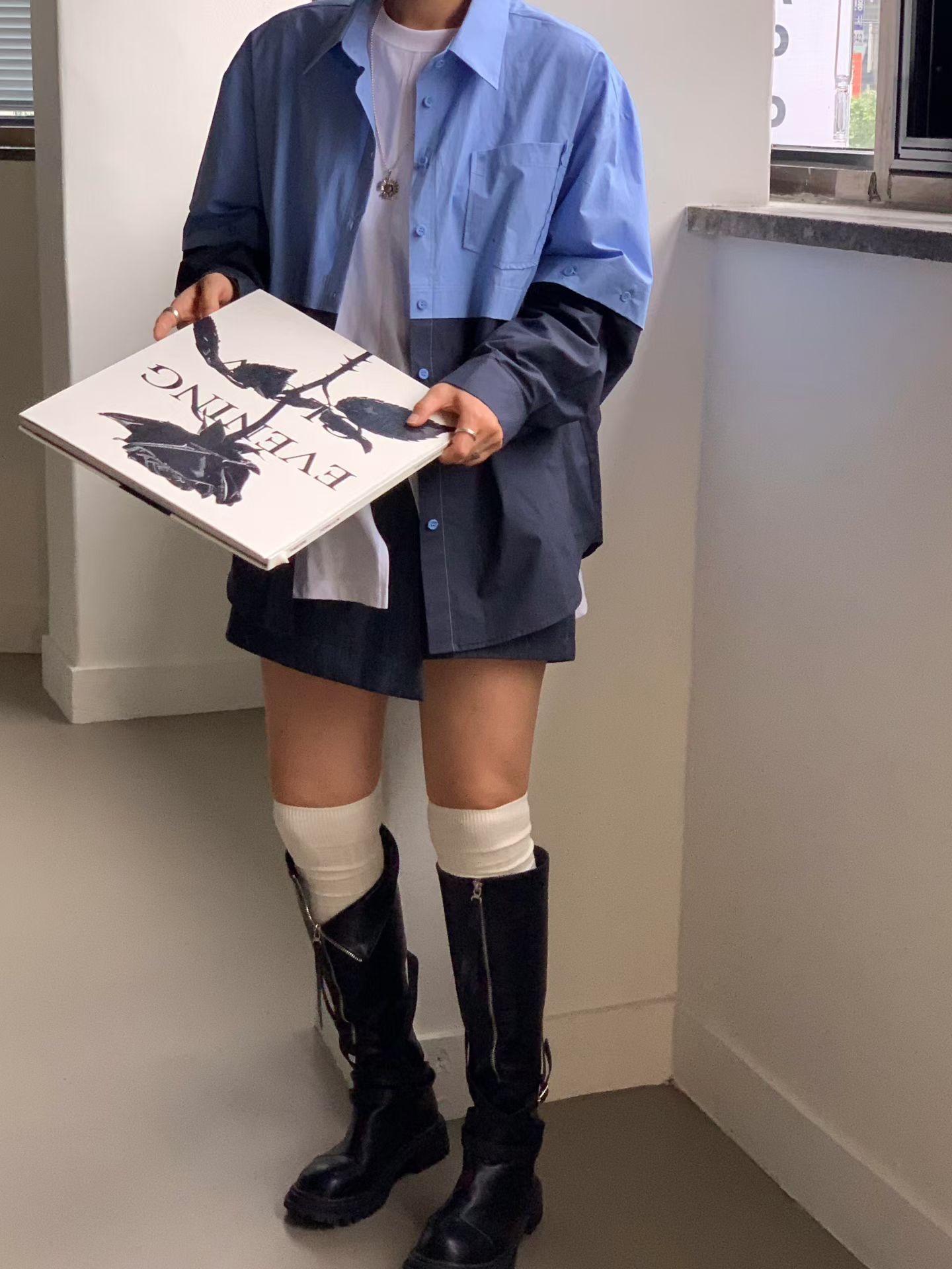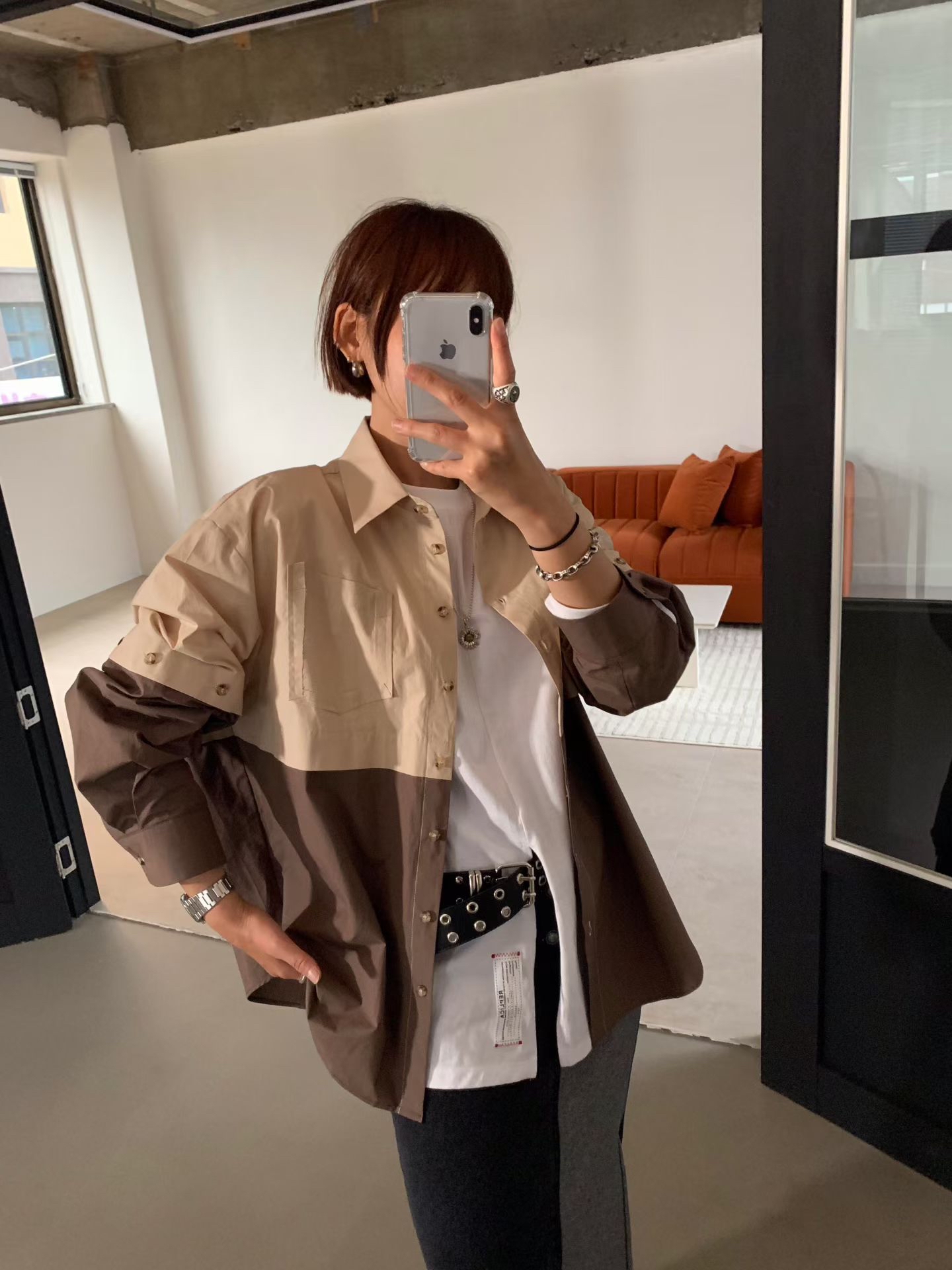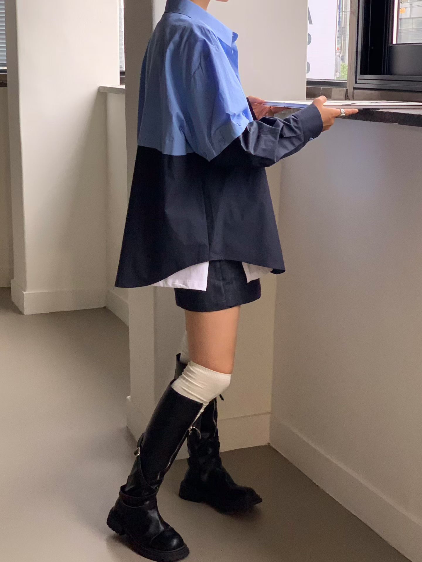 5K08撞色拼接恤 (袖可拆變短袖)