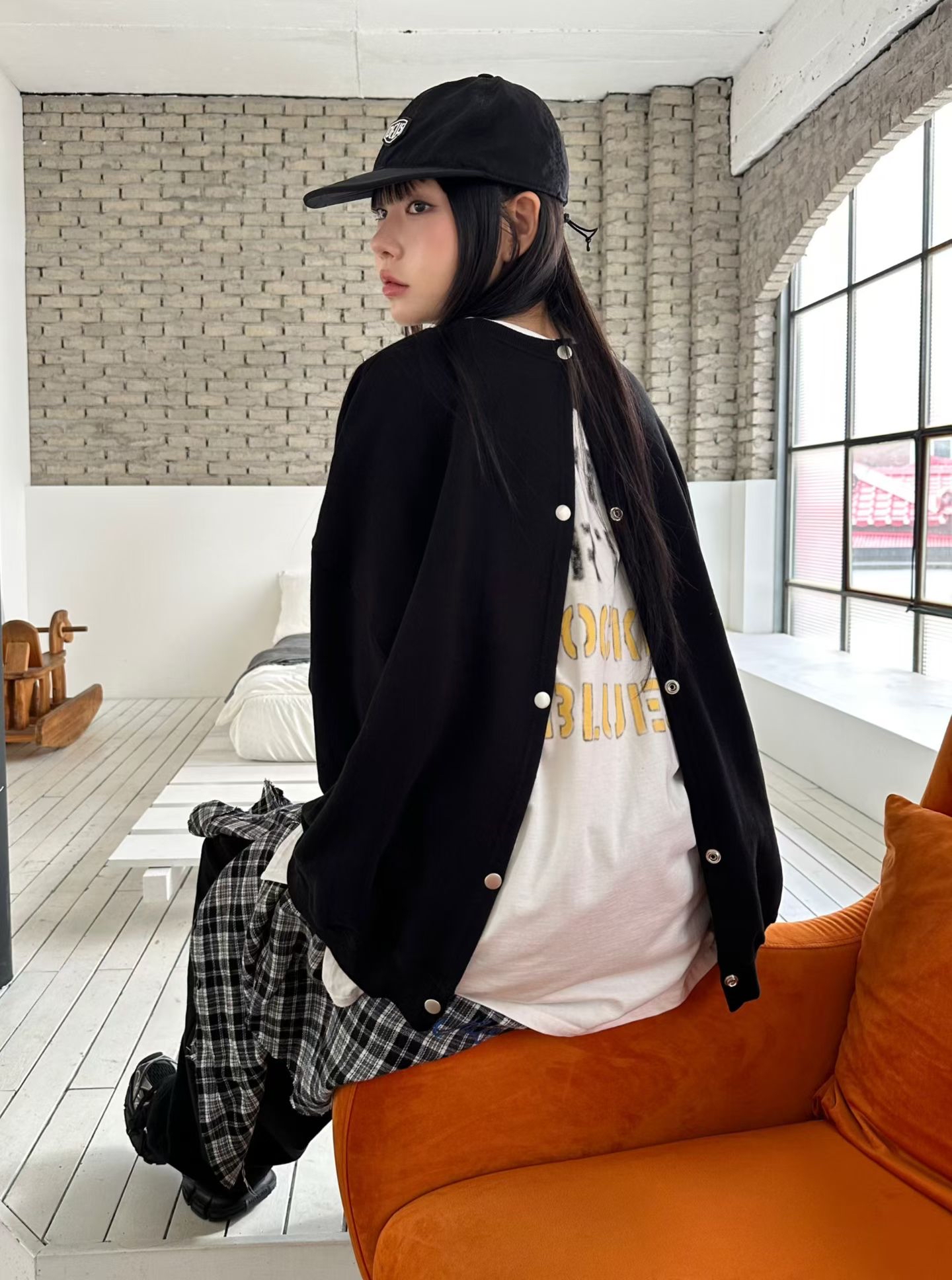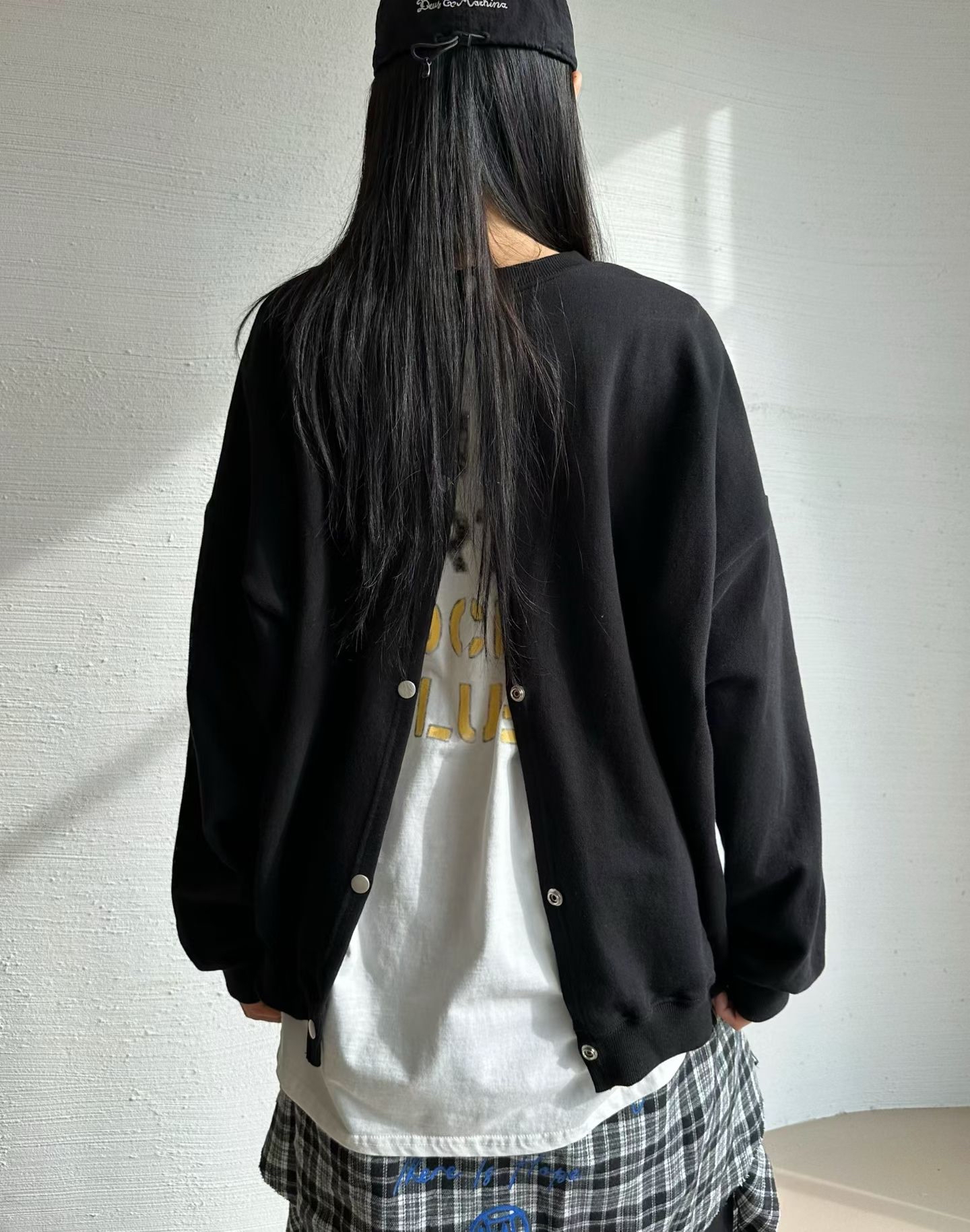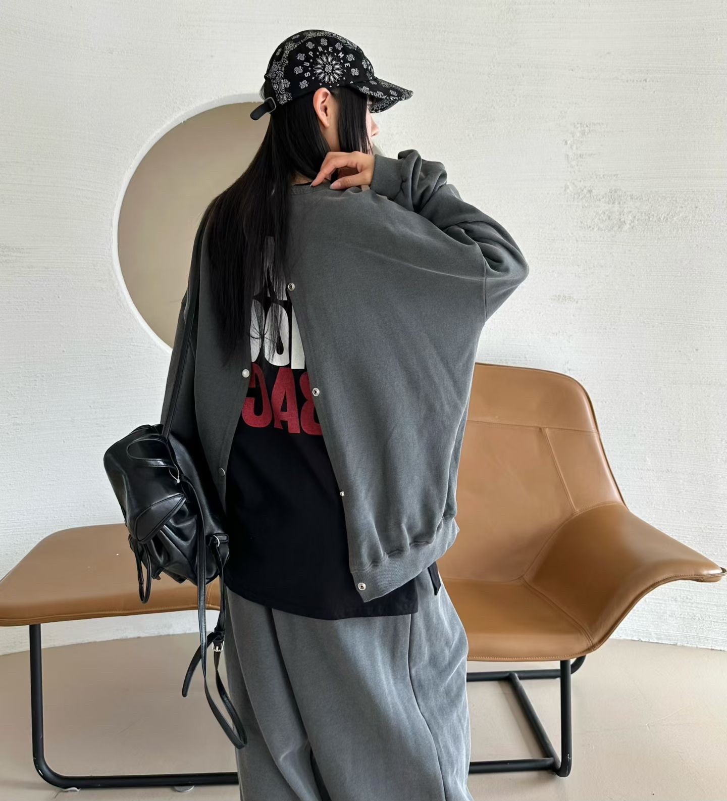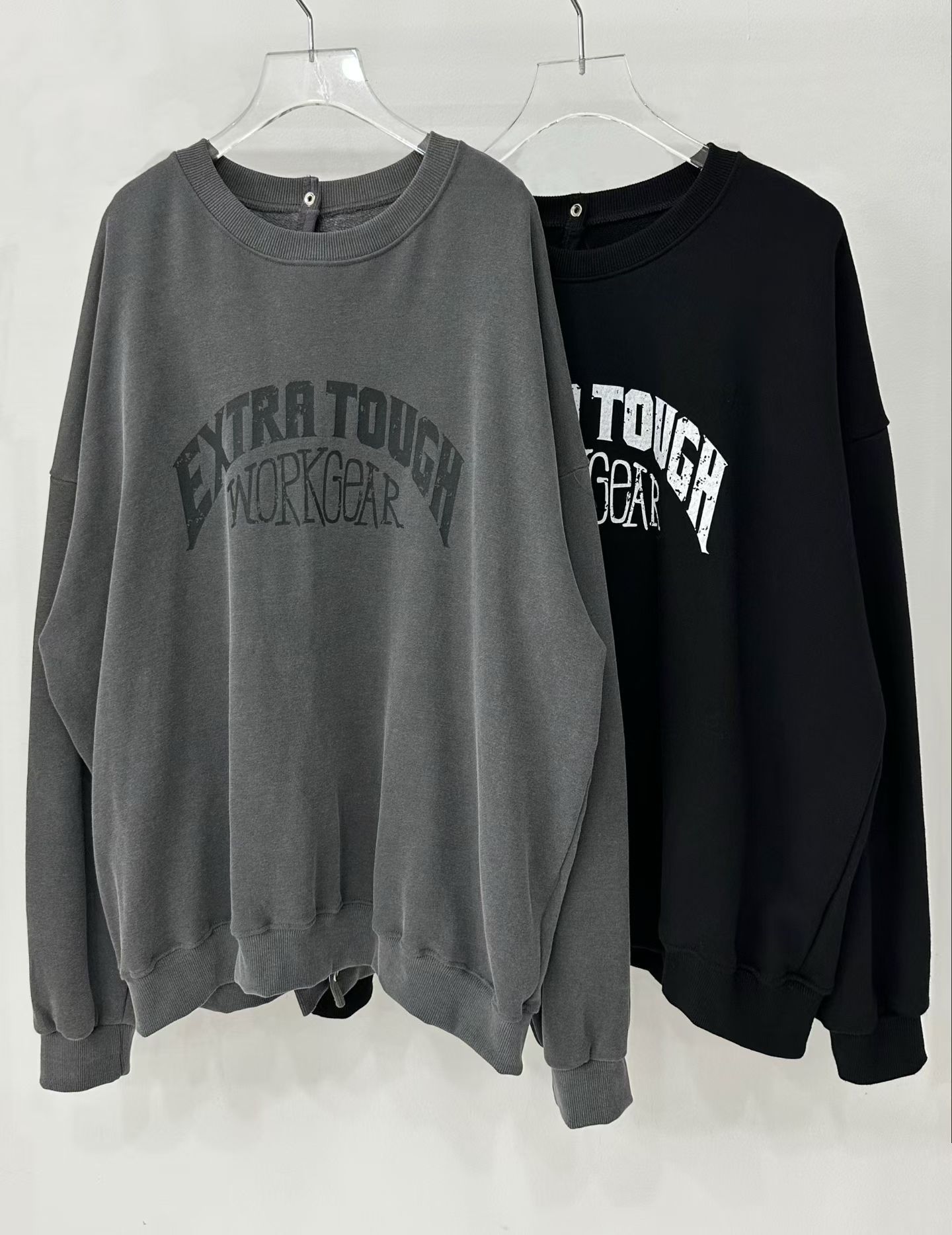 AM04 復古寬鬆字母印花圓領衛衣Cardigan