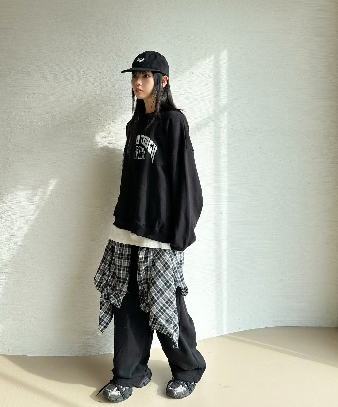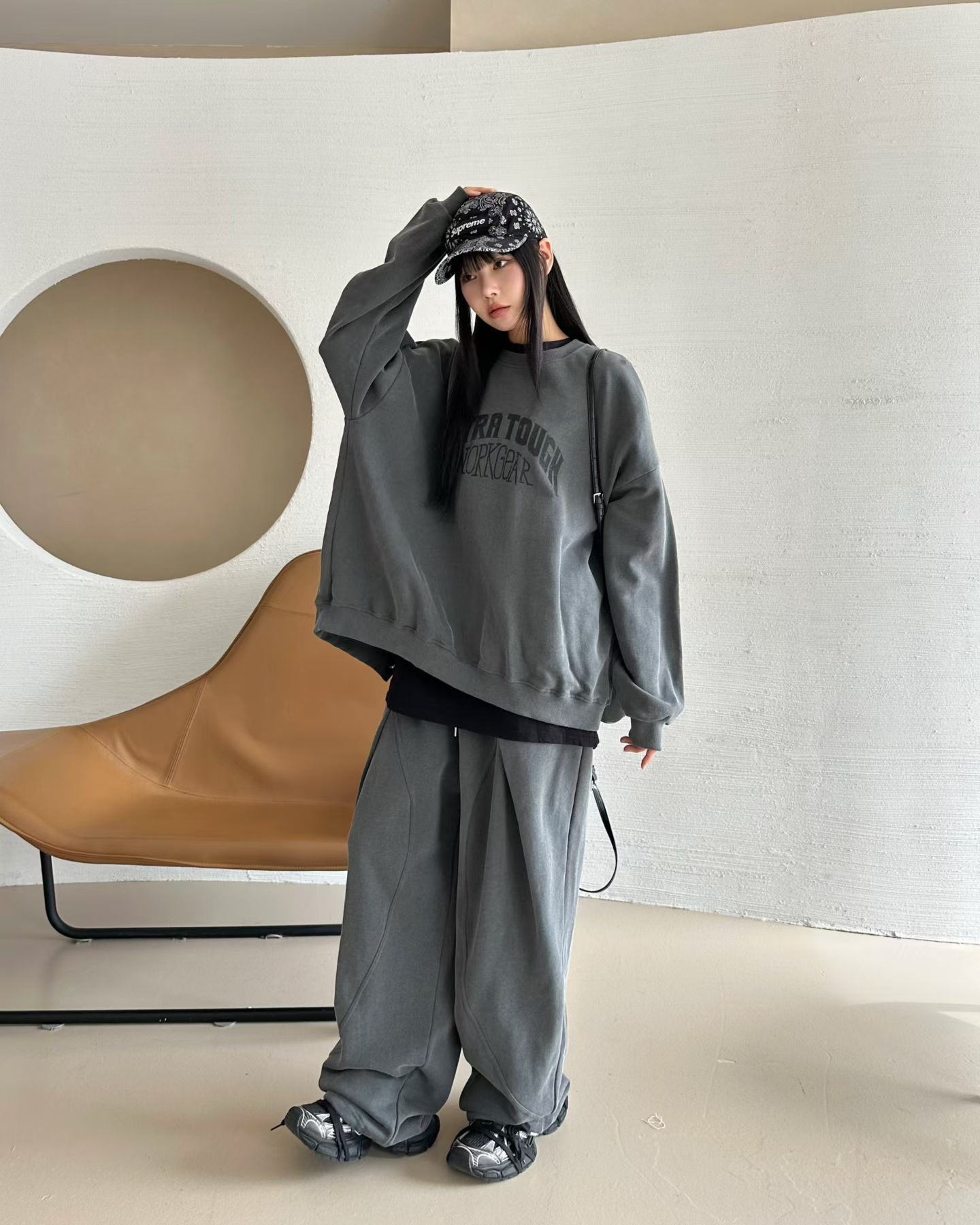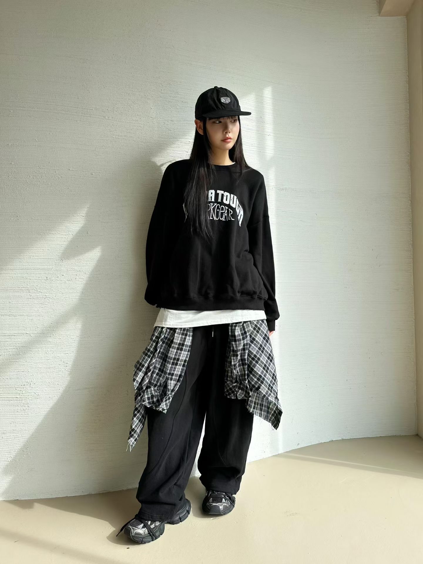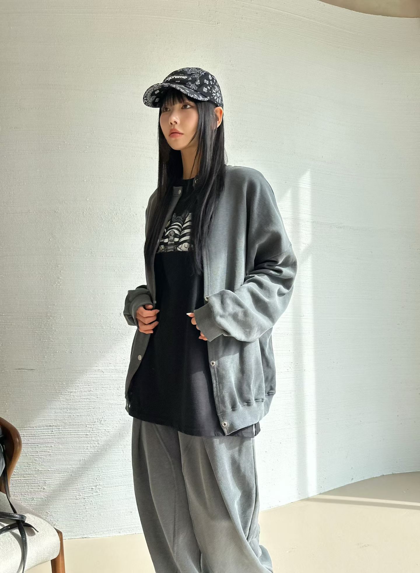 AM04 復古寬鬆字母印花圓領衛衣Cardigan