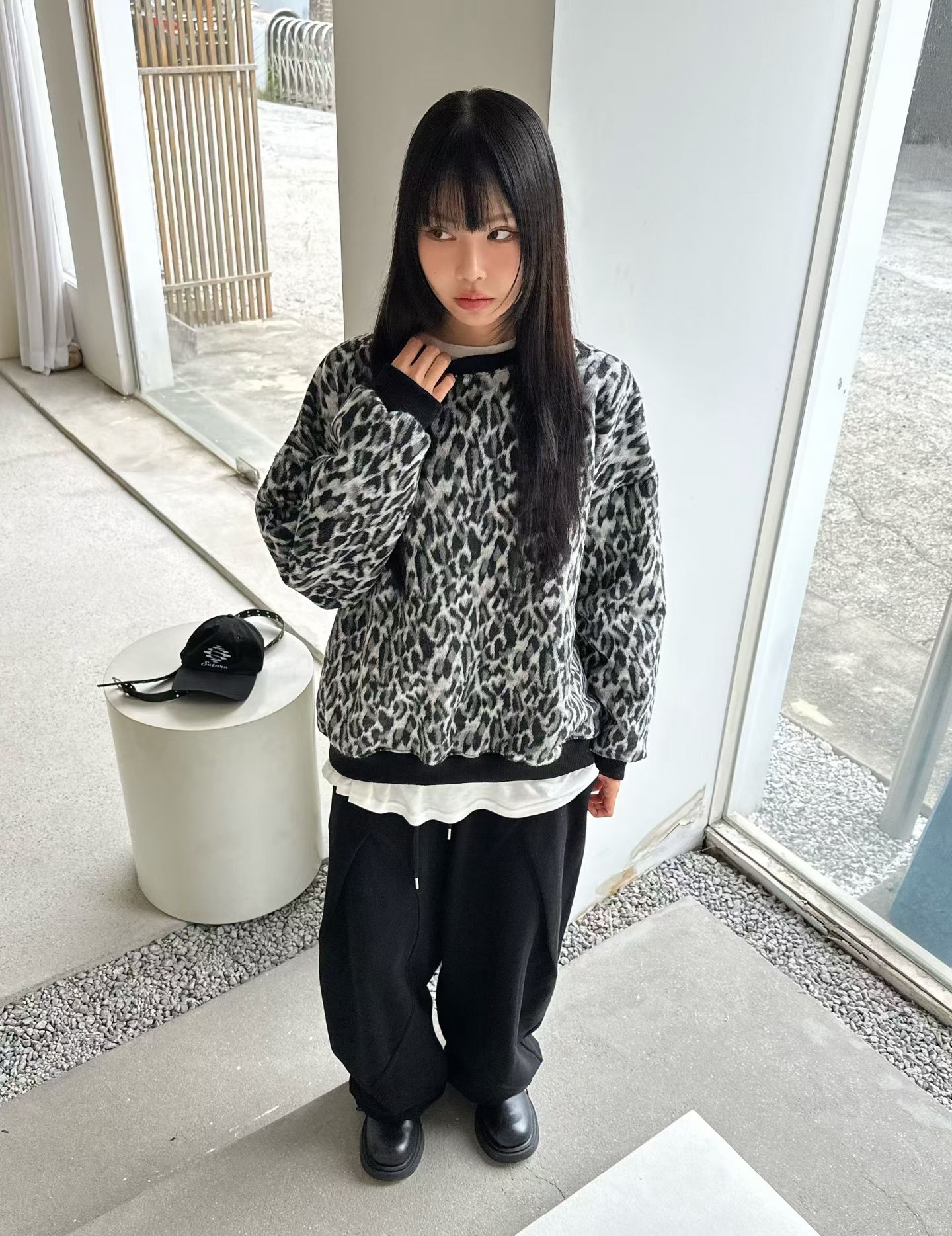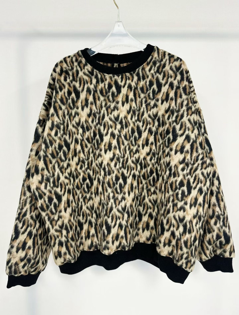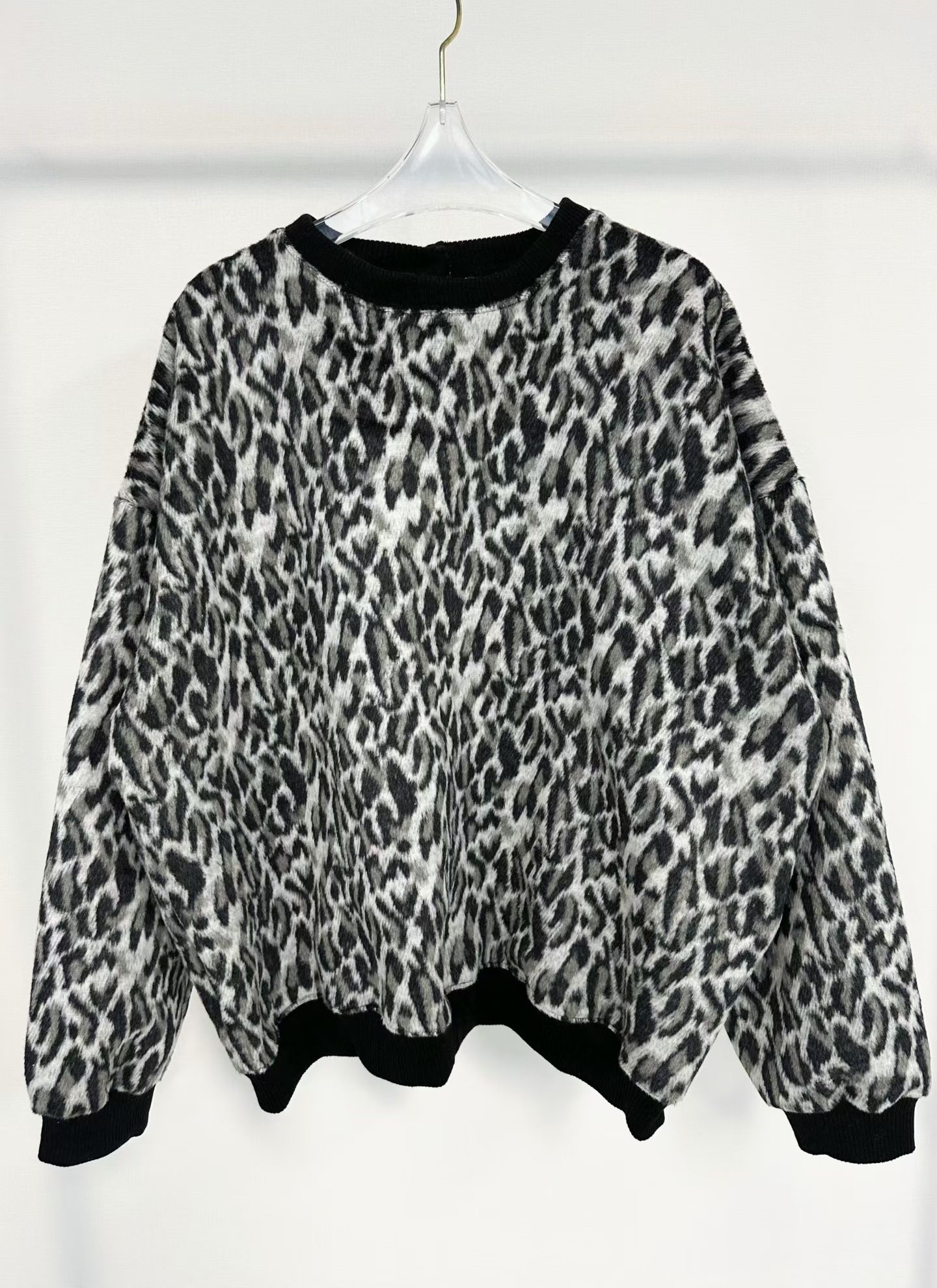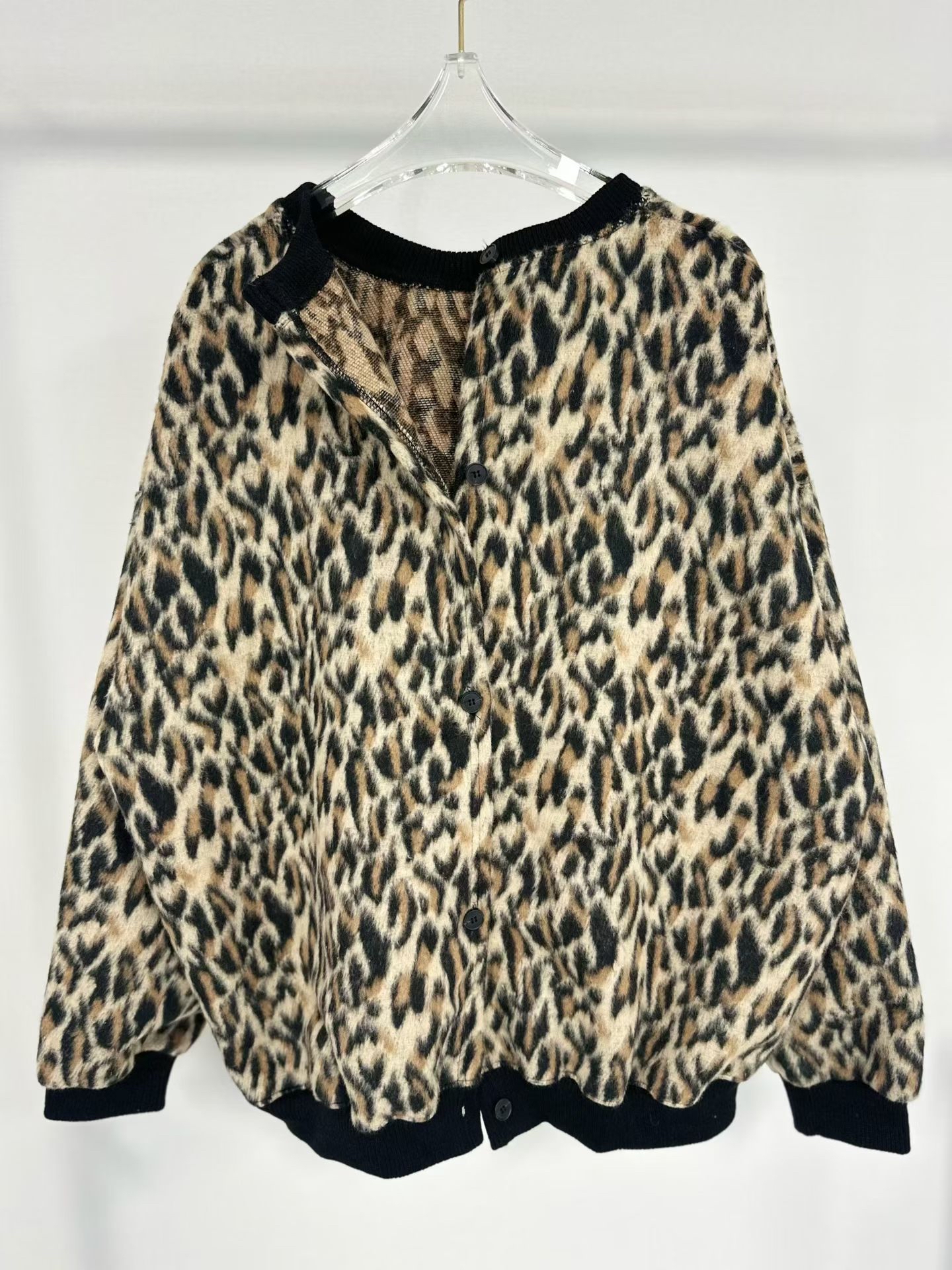 AM14 豹紋寬鬆衞衣Cardigan (前後可穿)