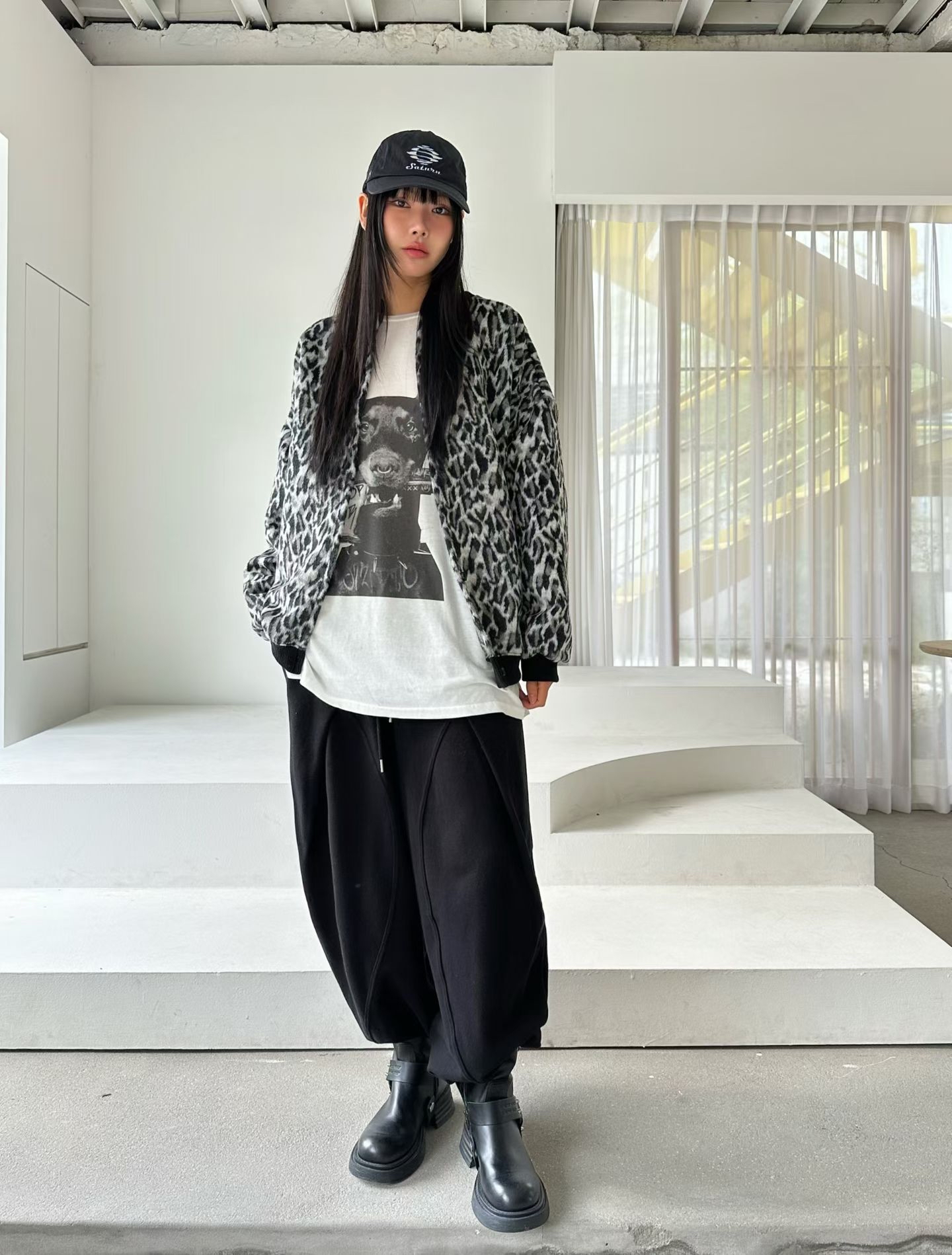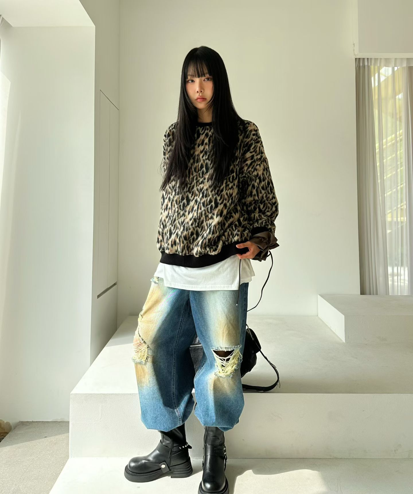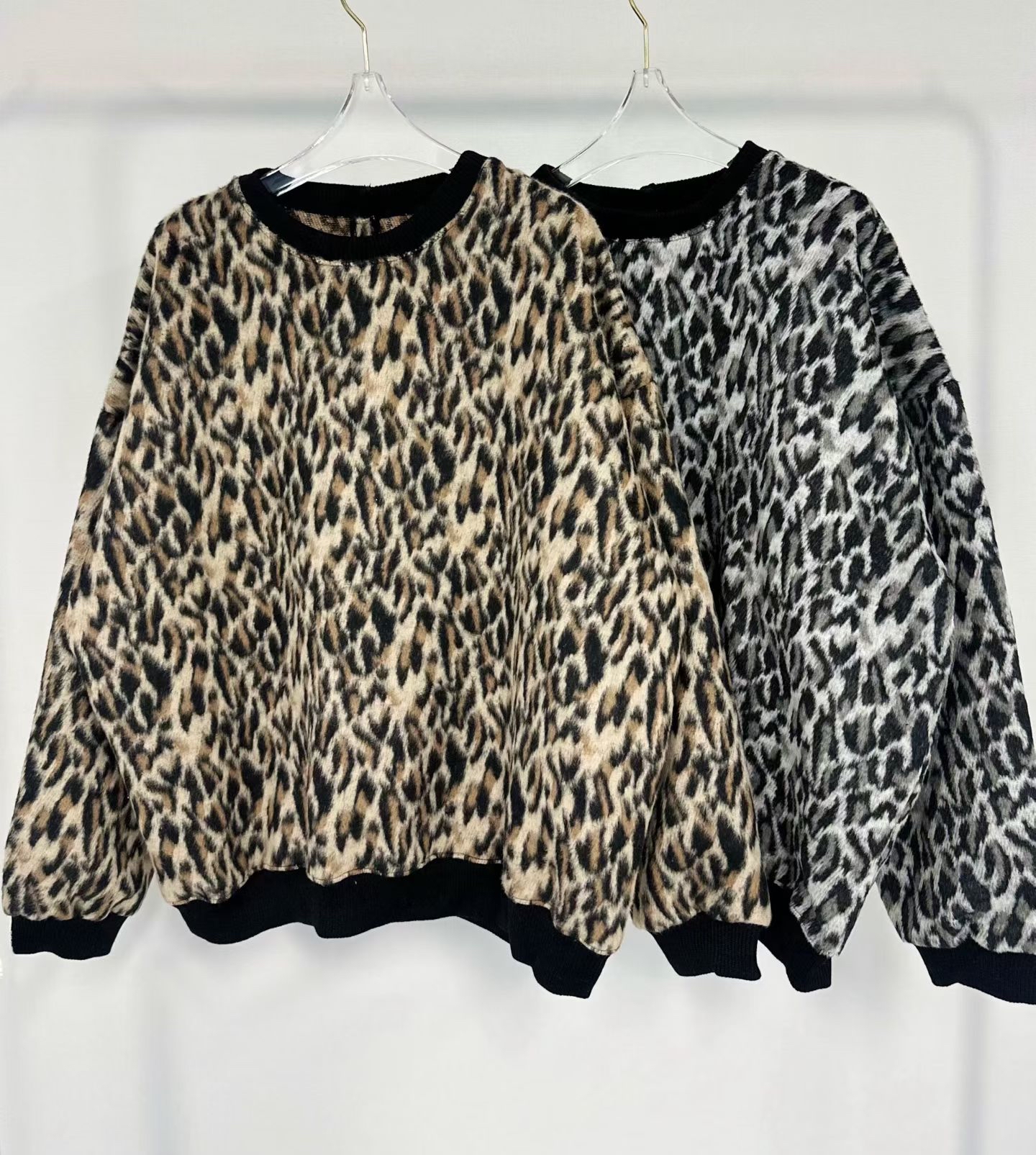 AM14 豹紋寬鬆衞衣Cardigan (前後可穿)