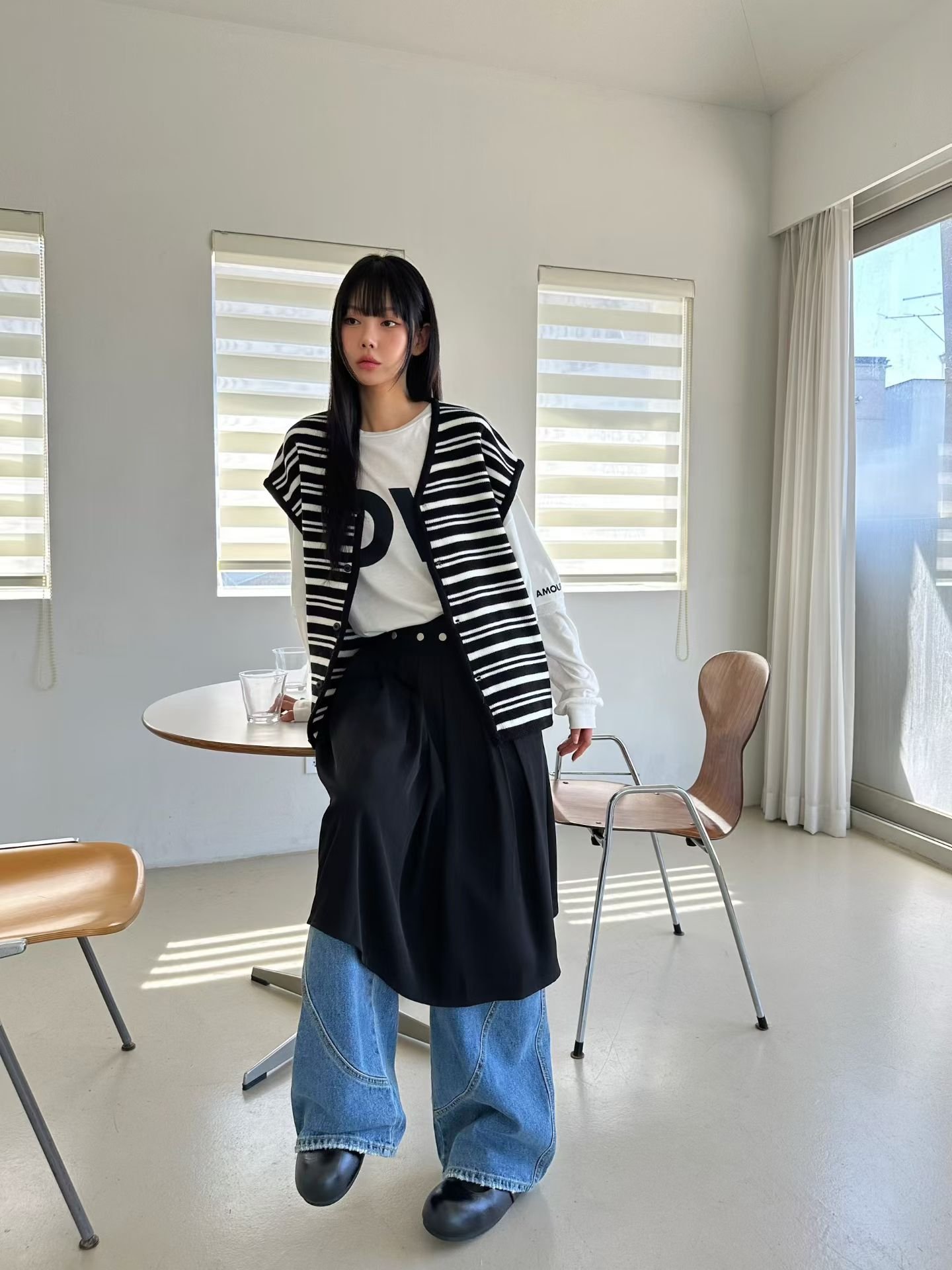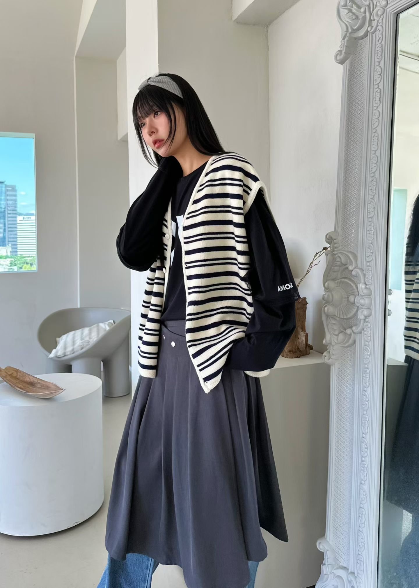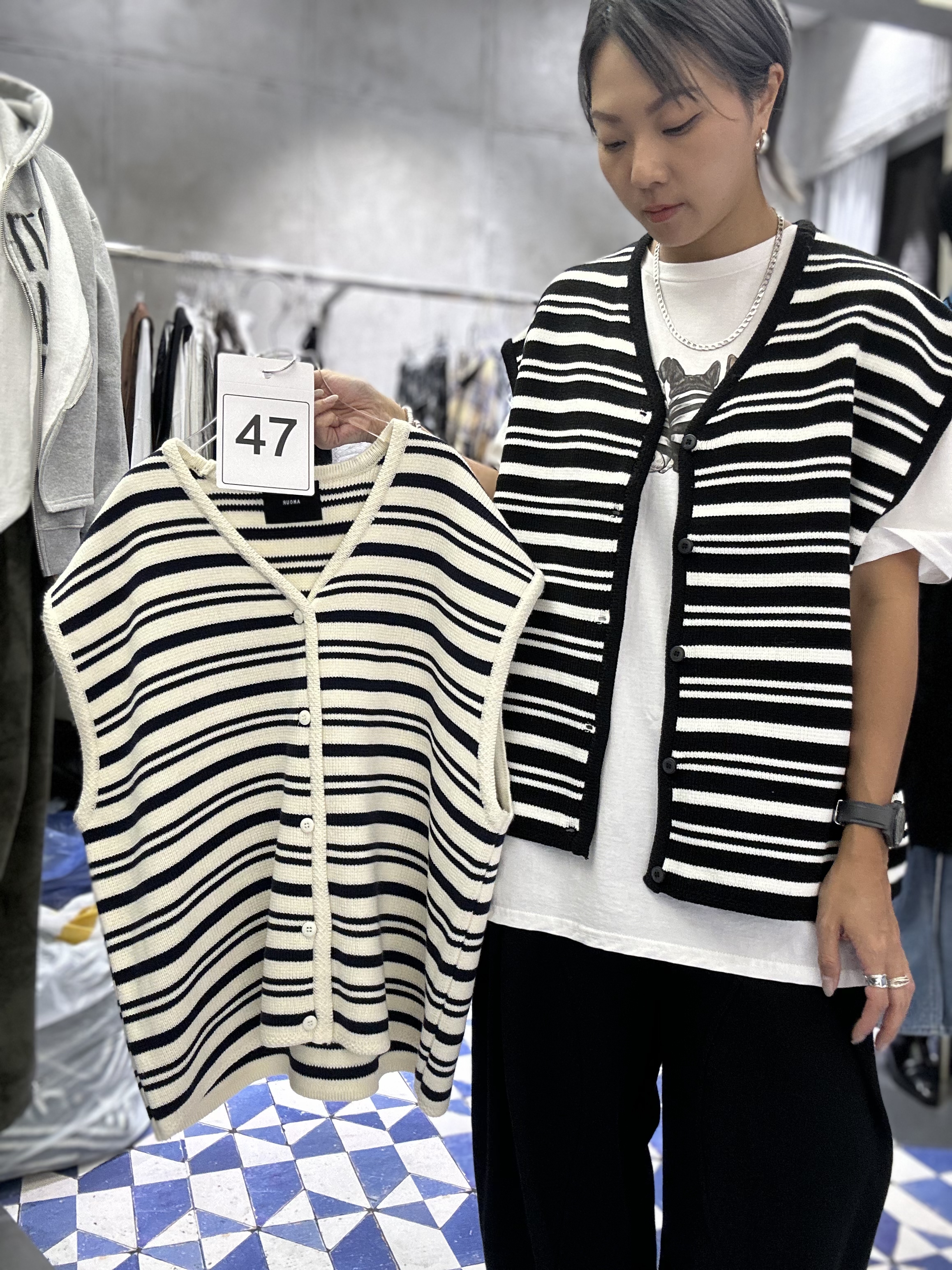 AM47 黑白條紋針織背心外套