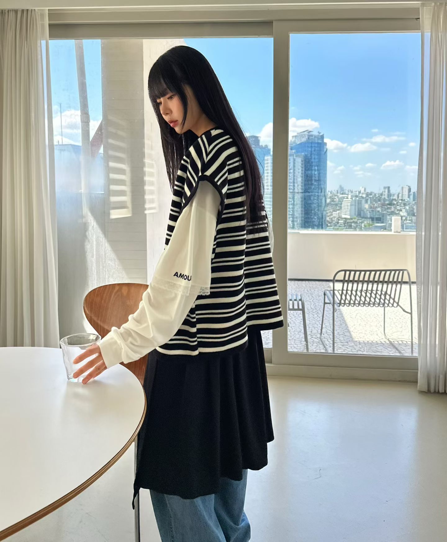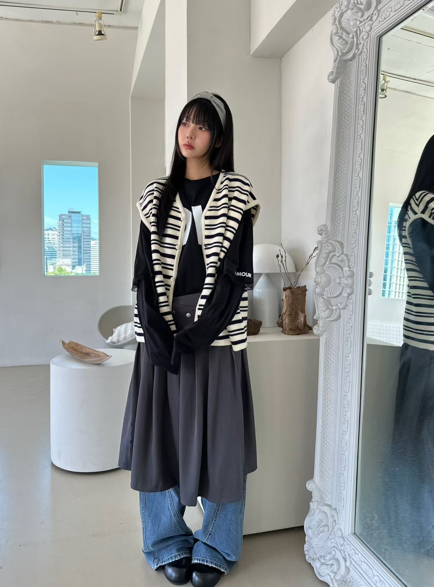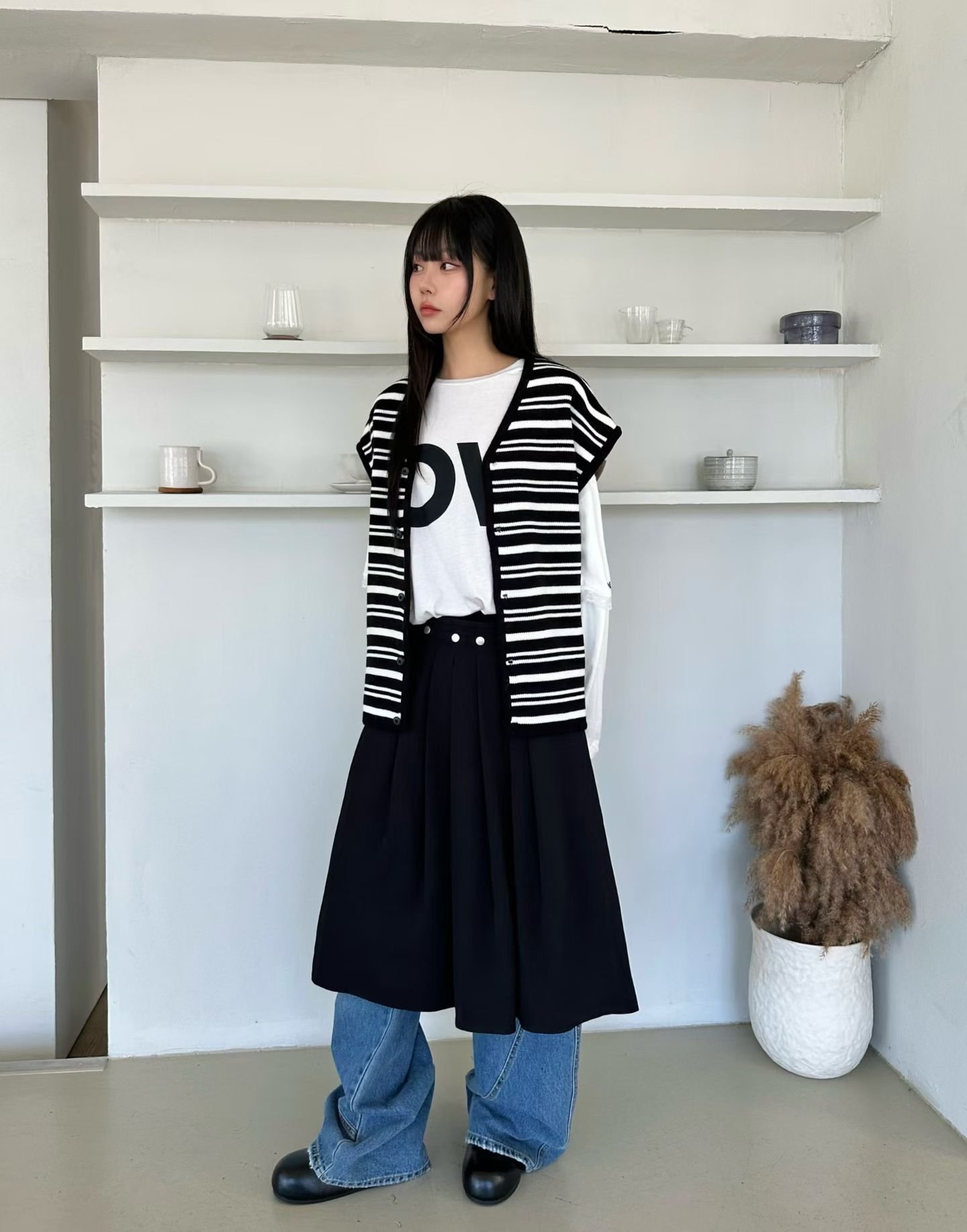 AM47 黑白條紋針織背心外套