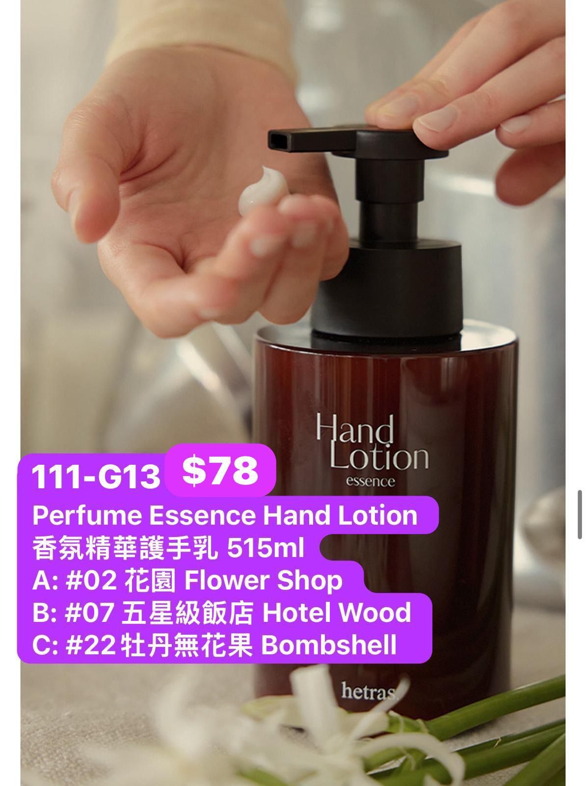 這款香氛精華護手乳容量為515ml,提供三種獨特香氣選擇,讓您在滋潤雙手的同時,享受愉悅的香氛體驗。 產品特色: * 三種香氣選擇: * A: #02 花園 Flower Shop * B: #07 五星級飯店 Hotel Wood * C: #22 牡丹無花果 Bombshell * 容量:515ml * 滋潤保濕:有效滋潤手部肌膚,防止乾燥。 * 香氛體驗:讓您在護手同時享受愉悅的香氣。