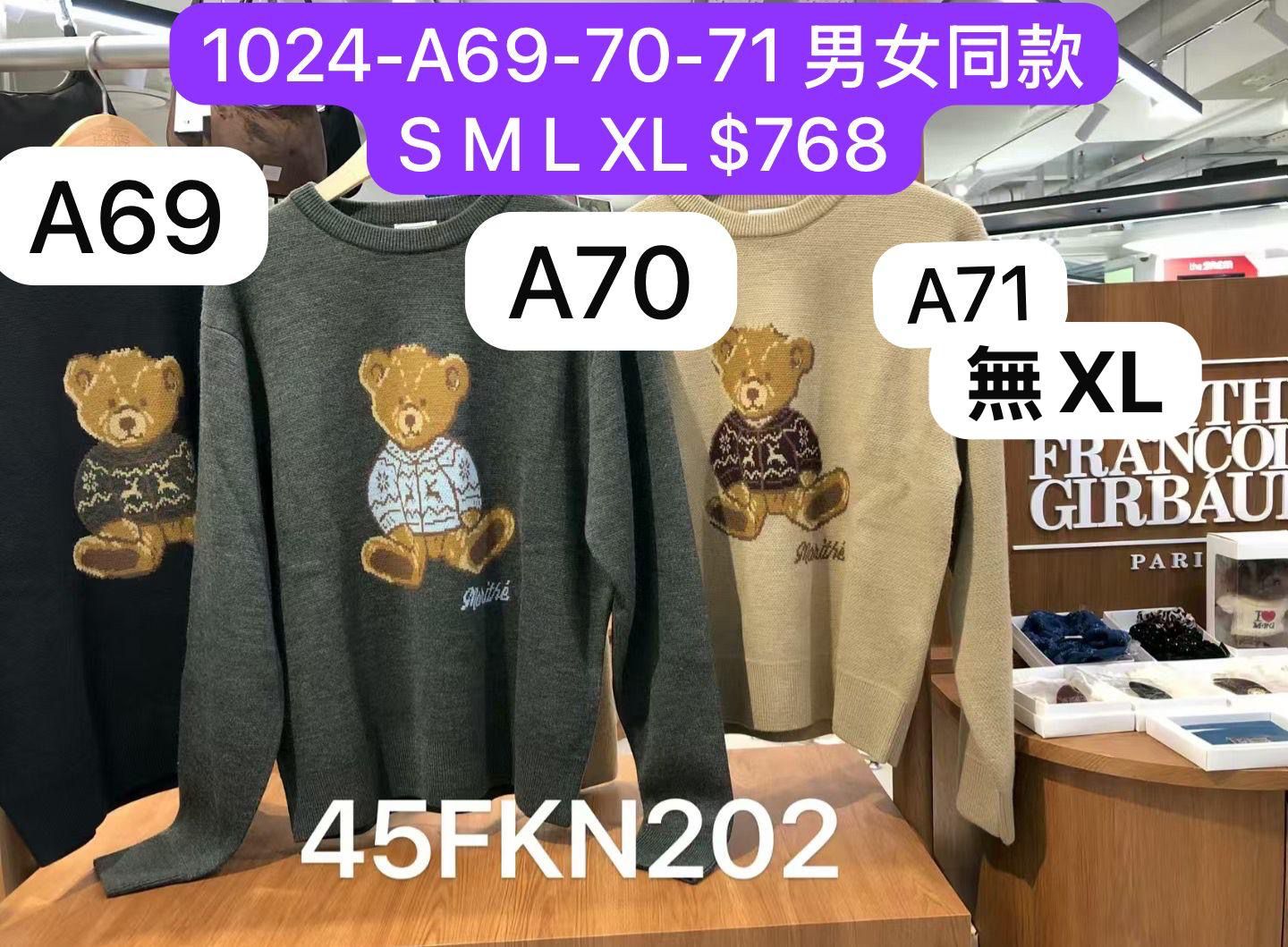 MFG復古風男女同款小熊針織衫 (A69/70/71)